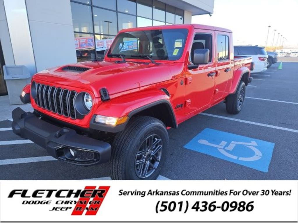 Firecracker Red Clearcoat 2026 Jeep Gladiator Sport S 4WD 8-Speed Automatic 3.6L V6 24V VVT Price includes: $1000 - 2026 National Select Inventory Bonus Cash. Exp. 01/04/2027 $1000 - 2026 National Retail Bonus Cash . Exp. 03/31/2026